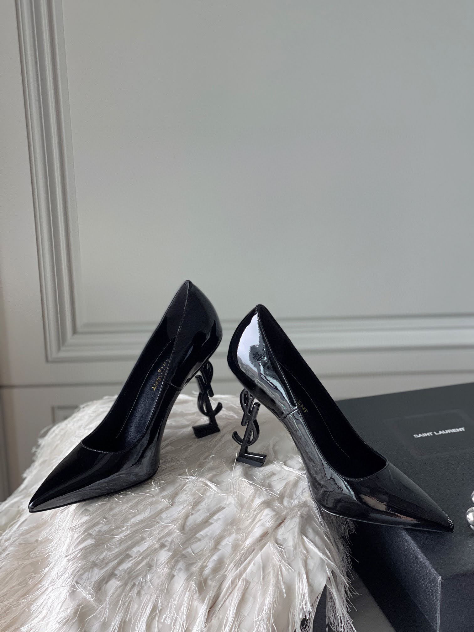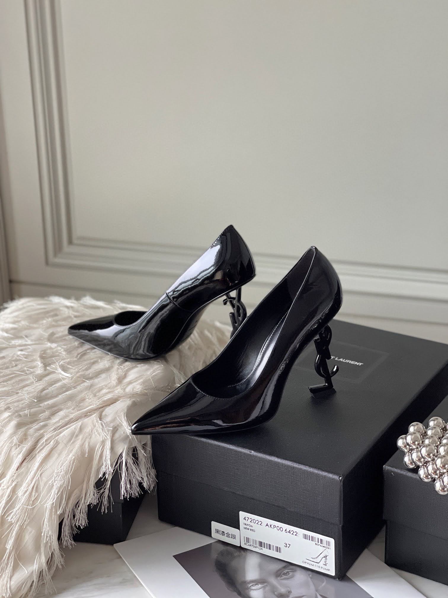 생로랑 오피움 펌프스 P19 색상 페이턴트 블랙 / 금장 힐 사이즈 35-39(40,41사이즈 주문제작 가능합니다) 굽높이 11cm 생로랑 YSL 시그니처 굽 모양 클래식한 펌프스입니다