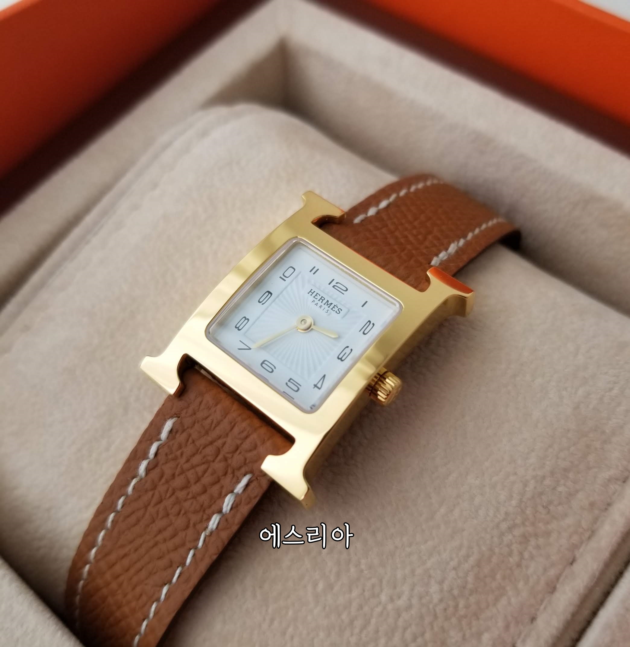 에르메스 H아워 에이치아워 에르메스 시계 금장 골드 스트랩 실사