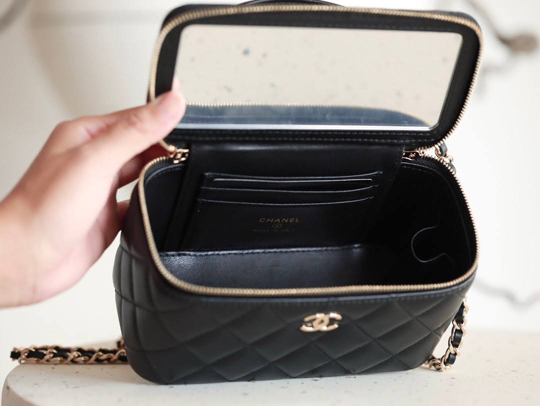 가방/CHANEL 샤넬 탑핸들 베니티백 램스킨 AP2199 에스리아 2022. 10. 28. 14:39 샤넬 탑핸들 베니티백 P34 색상 블랙 / 샴페인 골드 소재 램스킨 사이즈 9.5*17.*8cm 품번 AP2199 안쪽에 거울 있고 바닥에 CC로고 있는 버전입니당 샤넬 베니티백 샤넬 코스메틱백 september 780 공유하기 게시글 관리 에스리아 문의는 아래 톡문의 버튼을 눌러서카톡으로 남겨주세요^^ 가방/CHANEL 더보기 샤넬 탑핸들 동그리백 AP2502 에스리아 실사 샤넬 탑핸들 코인펄스 라이트 퍼플 AP2200 에스리아 실사 샤넬 직사각 베니티백 체인 골드볼 블랙 AP2303 샤넬 22s 호보백 팬더샵