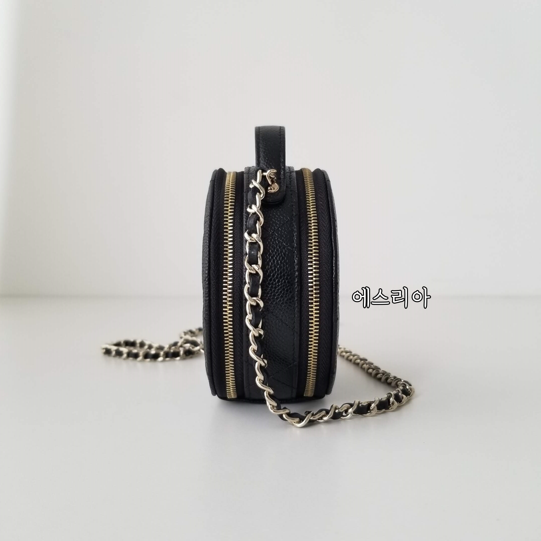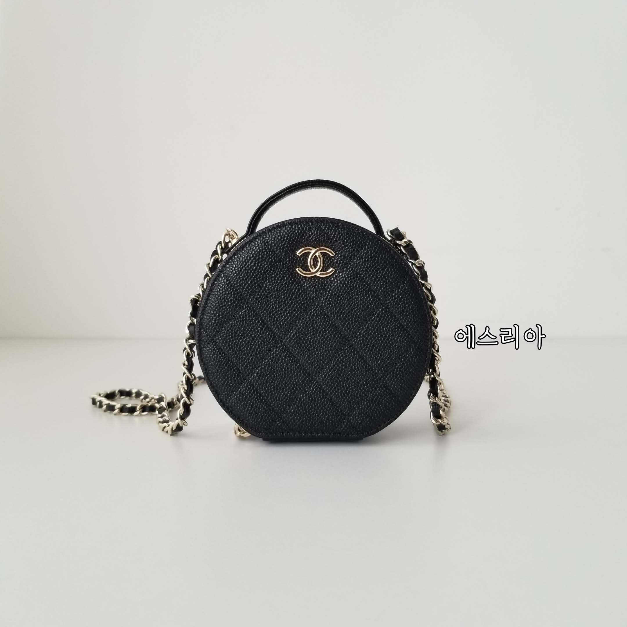 샤넬 미니백 샤넬 동그리백 샤넬 탑핸들 동그리 블랙 캐비어 케비어 샴페인 골드 실사