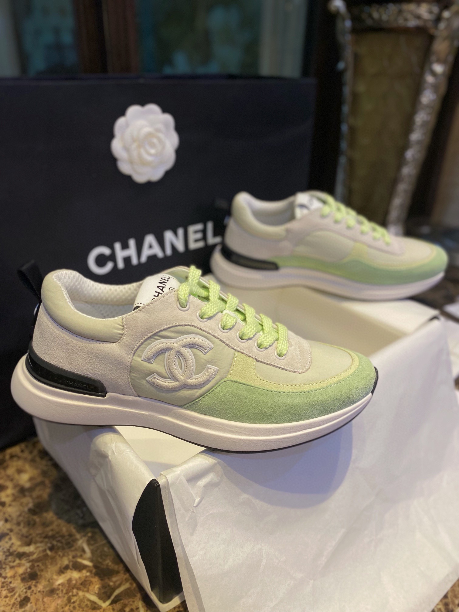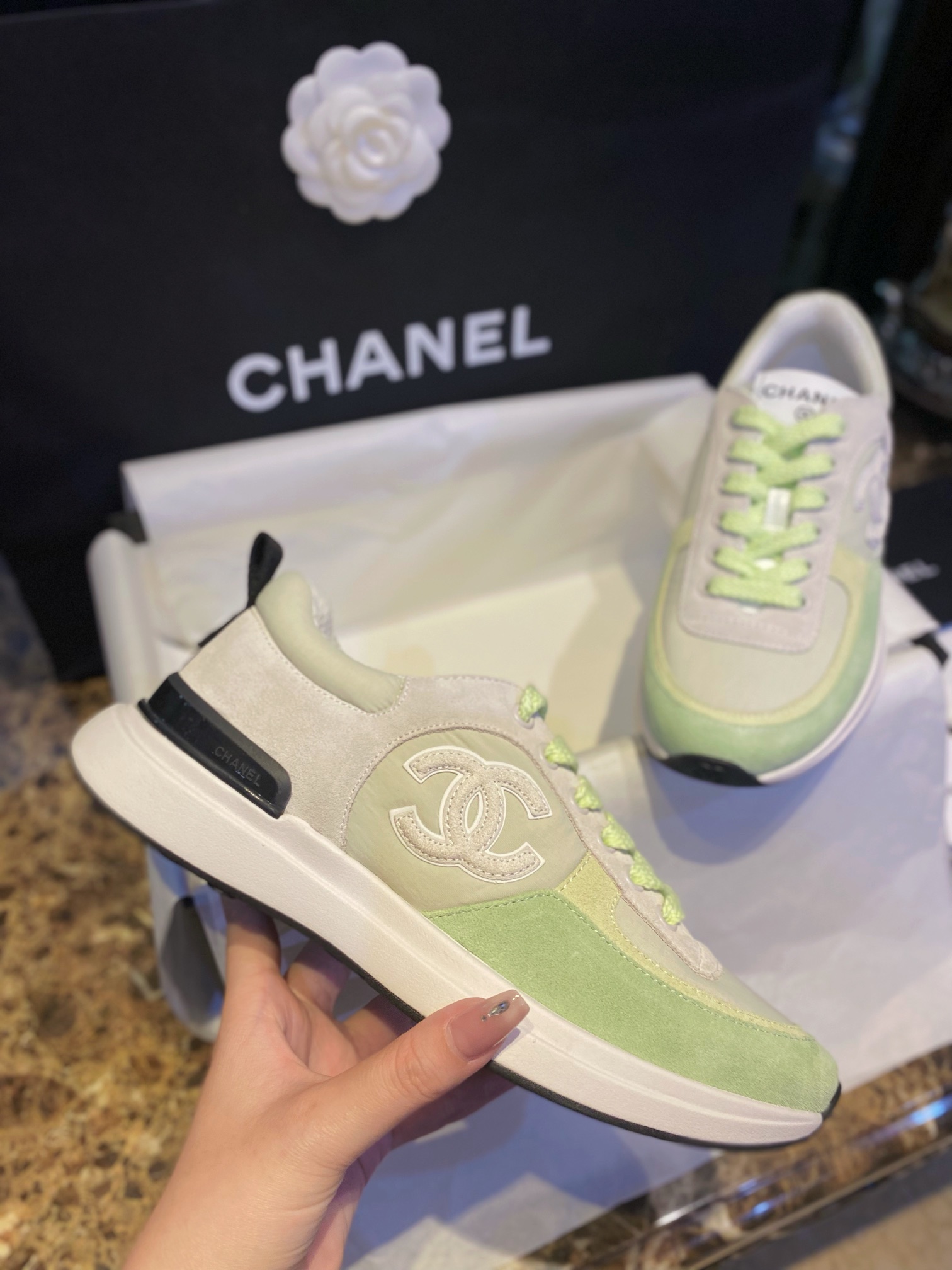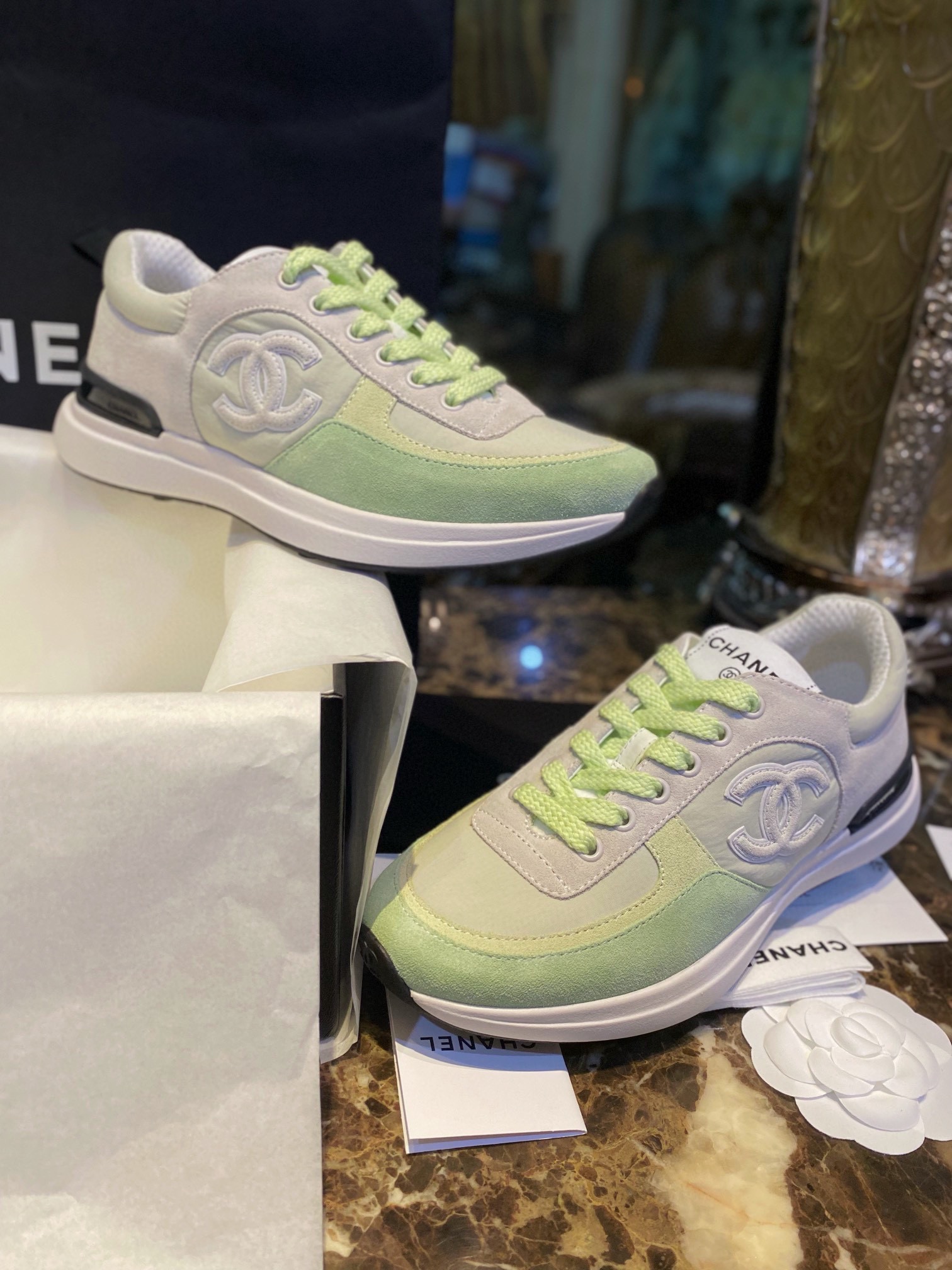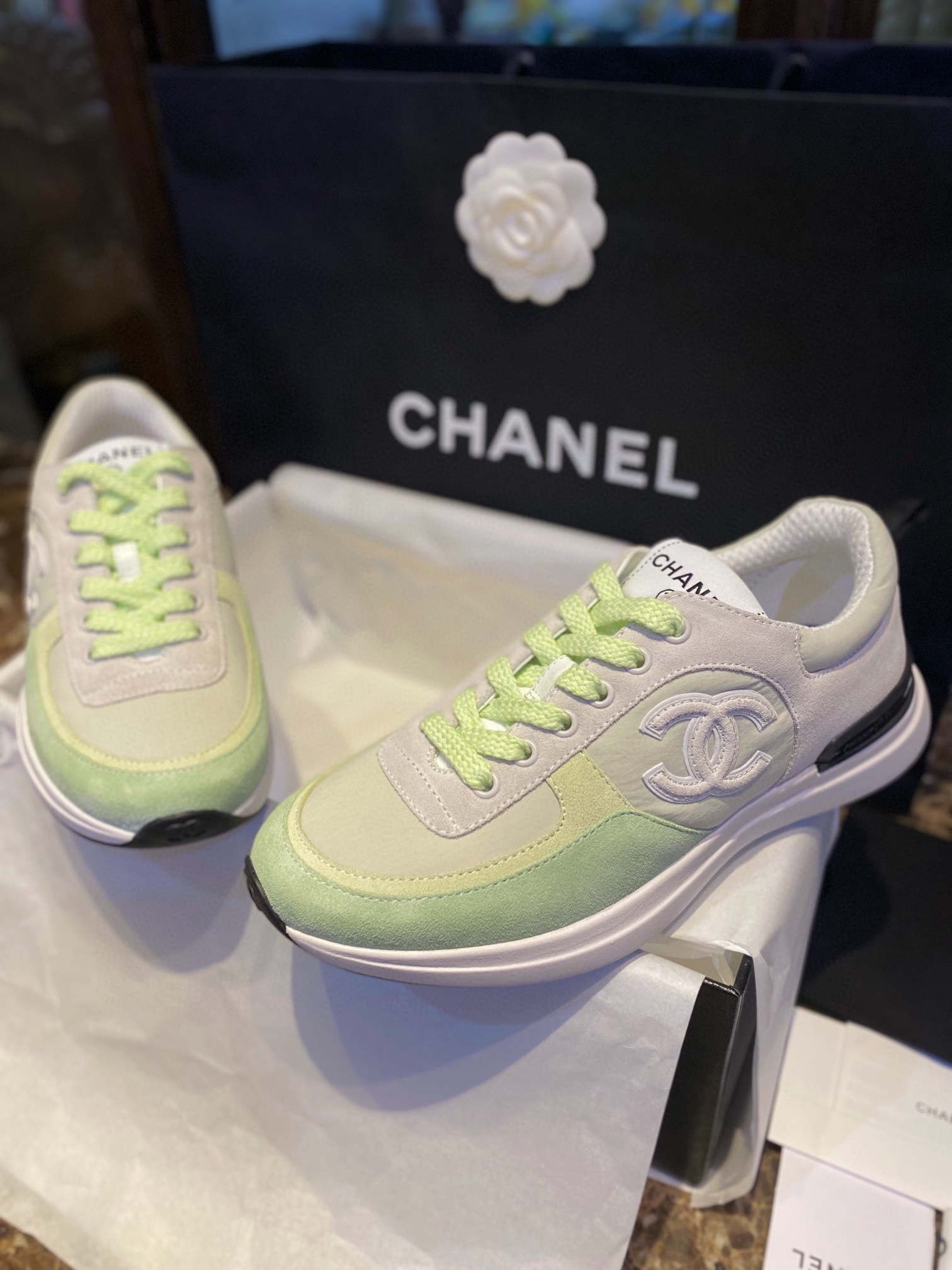 샤넬스니커즈 초록 라이트그린 해피네 샤넬운동화 샤넬신발