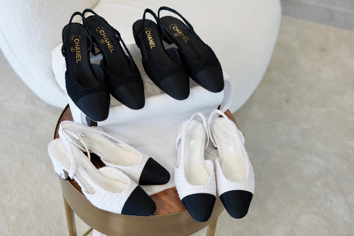 샤넬 슬링백 P20 색상 화이트 블랙코 소재 코튼 트위드 사이즈 34 35 35.5 36 36.5 37 37.5 38 38.5 39 40 41 제작기간 20일 이상 소요되세요~ 샤넬신발 샤넬슬링백 해피네 샤넬트위드슬링백 플랫 화이트