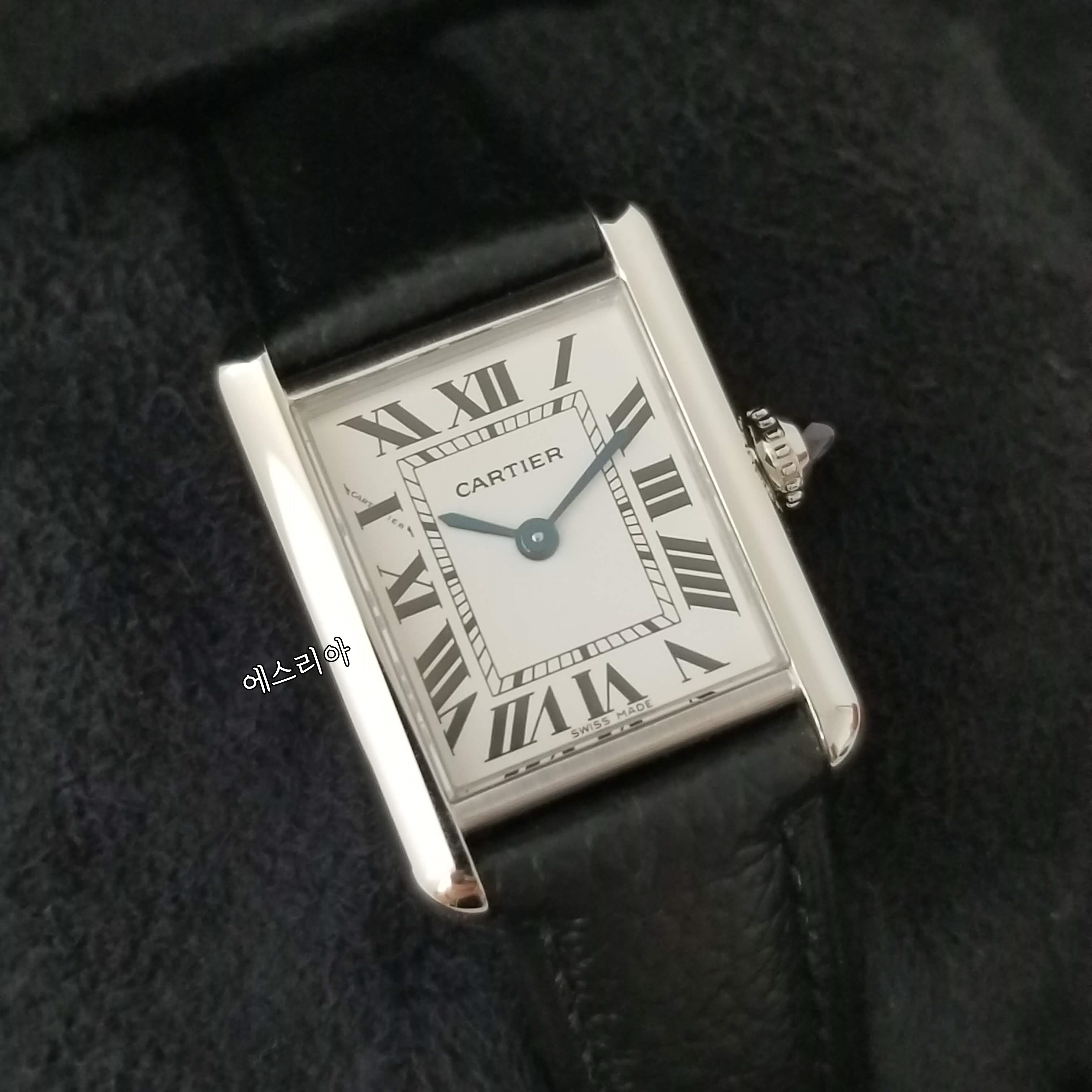 까르띠에 탱크머스트 가죽스트랩 은장 까르띠에 탱머 에스리아 실사