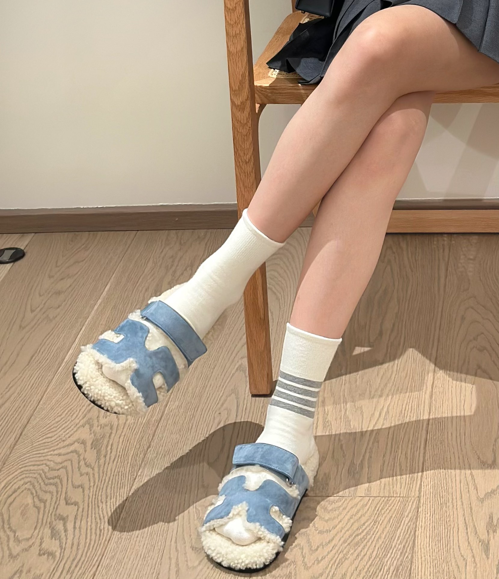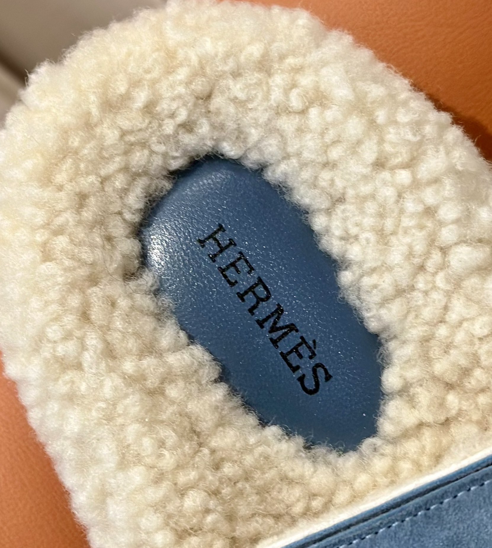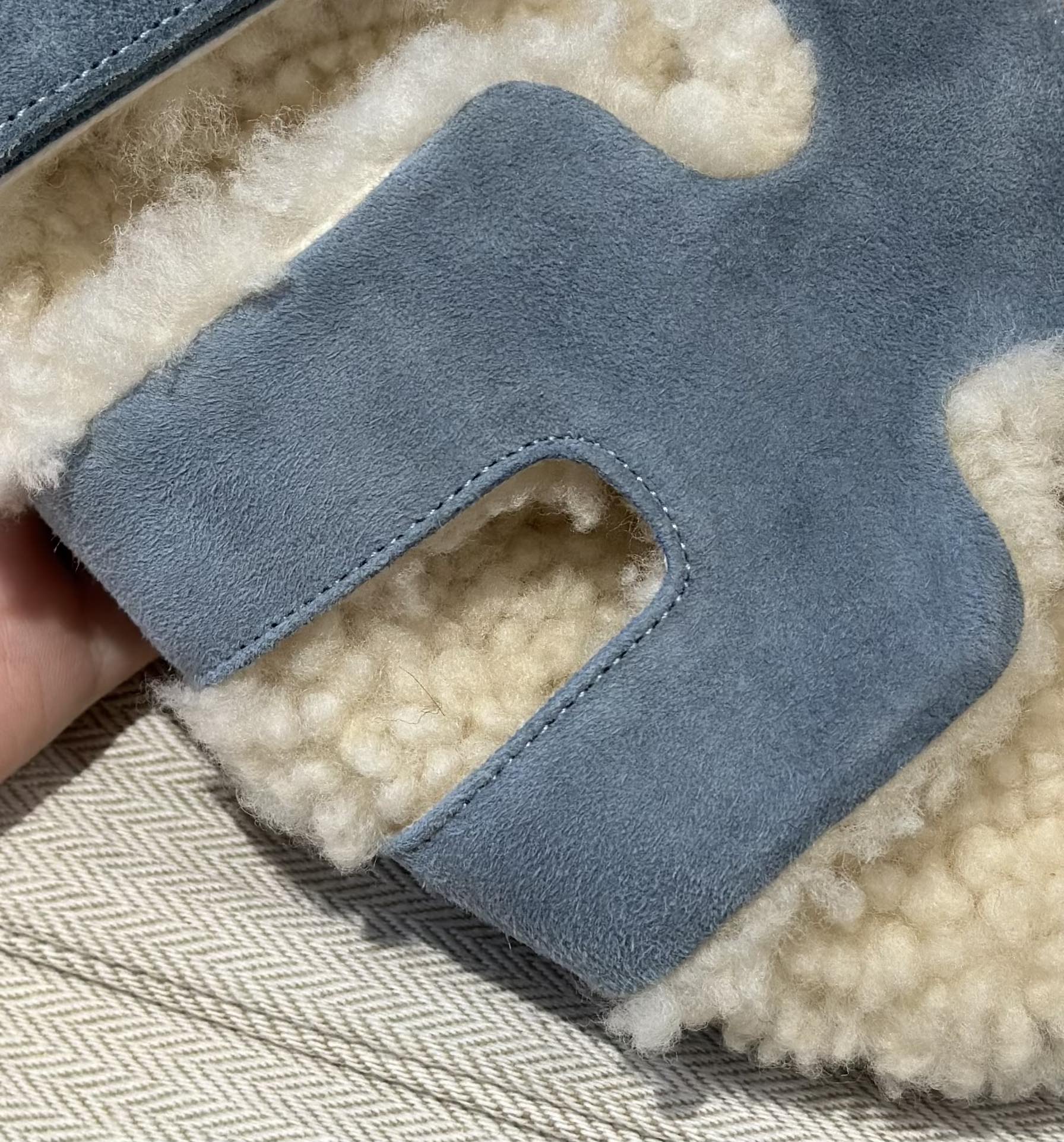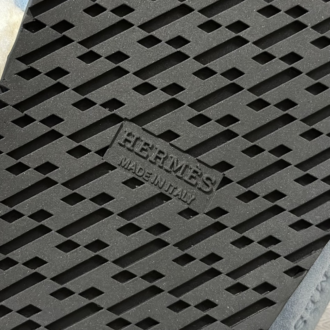 에르메스 양털 슬리퍼 시어링 블루 컬러 스웨이드 벨크로샌들 슬리퍼