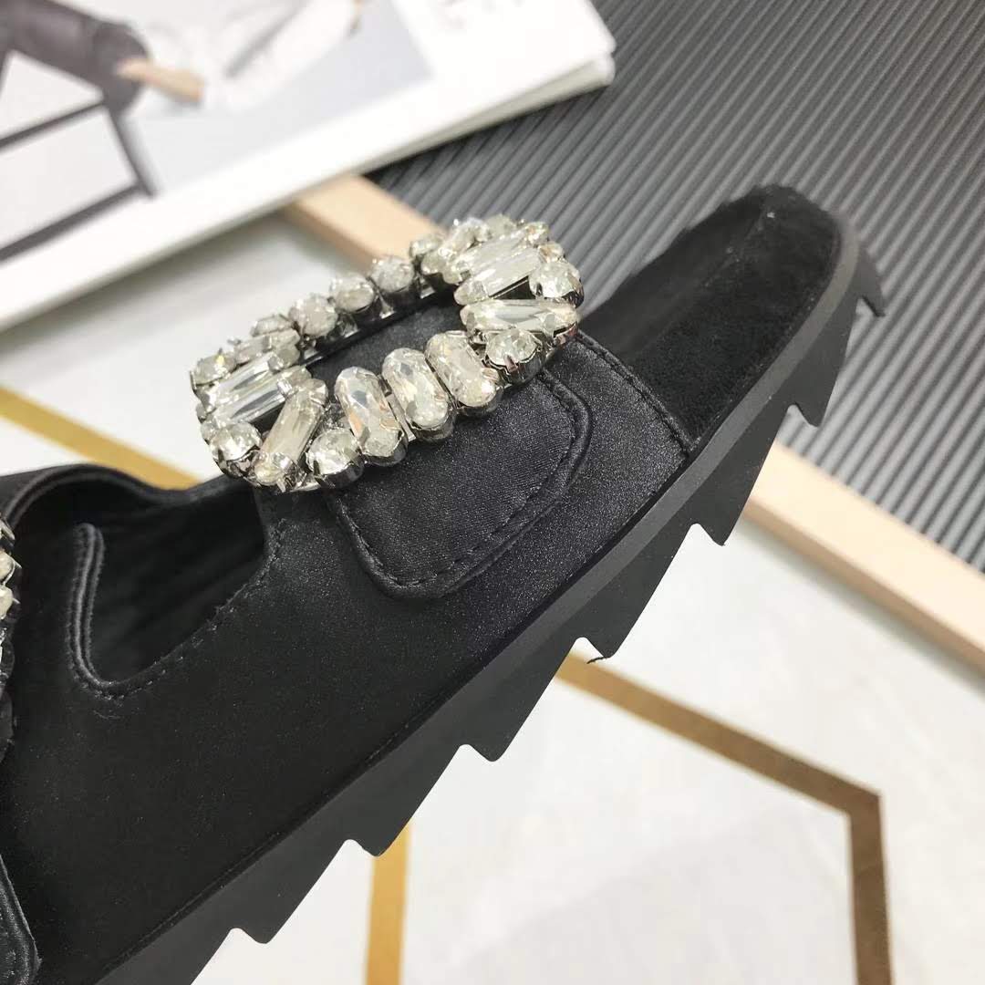로저비비에 슬리디 비브 스트라스 버클 슬리퍼 블랙실크