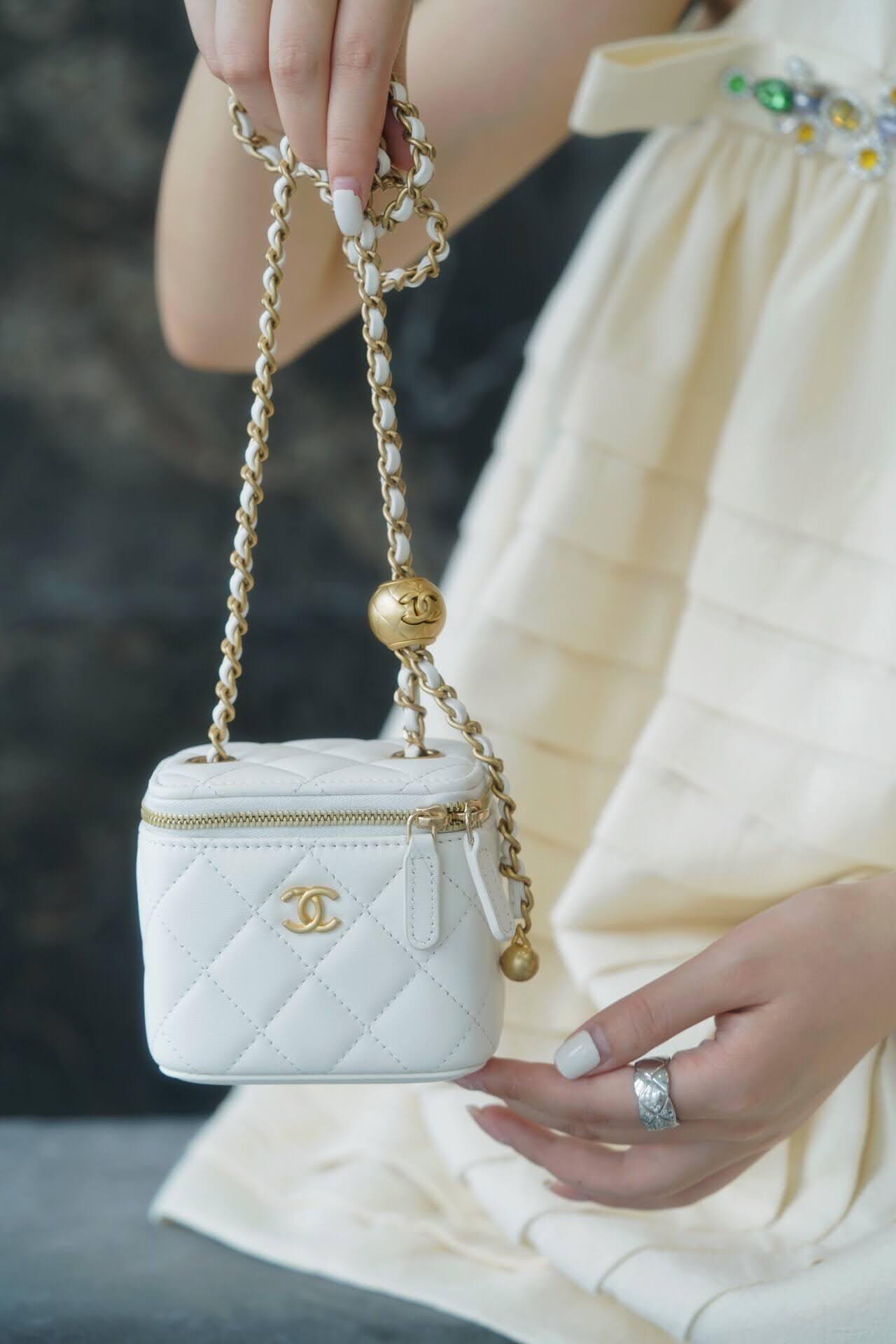 가방/CHANEL 샤넬 골드볼 코스메틱 미니백 화이트 팬더샵 에스리아 2021. 8. 21. 22:41 샤넬 스몰 체인 코스메틱 케이스 P25소재 램스킨, 골드 메탈 색상 화이트사이즈 8.5x11x7cm 레퍼런스 AP1447팬더샵 샤넬 골드볼 미니 베니티백 샤넬베니티백화이트 공유하기 게시글 관리 에스리아 문의는 아래 톡문의 버튼을 눌러서카톡으로 남겨주세요^^ 가방/CHANEL 더보기 샤넬 클래식 미니 쁘띠삭 램스킨 블랙/은장 팬더샵 샤넬 가브리엘 호보백 스몰 블랙 샤넬 골드볼 코스메틱 미니백 블랙 AP1447 팬더샵 샤넬 가브리엘 백팩 블랙 스몰 팬더샵