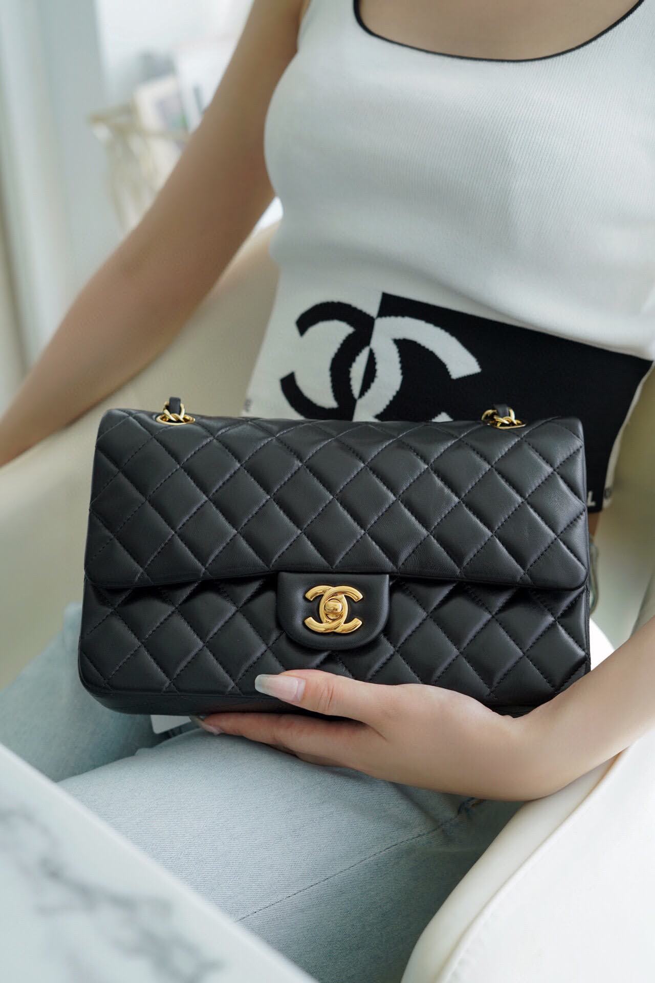 가방/CHANEL 샤넬 클미 램스킨 블랙 금장 A01112 팬더샵 에스리아 2022. 2. 7. 23:59 샤넬 클래식 미듐 P57 사이즈 25cm 소재 램스킨 색상 블랙 금장 레퍼런스 A01112 모델컷 상세컷 정면 옆구리 뒷면 바닥 내부 상단 샤넬 클미 클래식미듐 샤넬 가방 사넬가방 블랙 금장 팬더샵 팬더샵 1450 공유하기 게시글 관리 에스리아 문의는 아래 톡문의 버튼을 눌러서카톡으로 남겨주세요^^ 가방/CHANEL 더보기 샤넬 클미 캐비어 블랙 금장 A01112 팬더샵 샤넬 클미 램스킨 블랙 은장 A01112 팬더샵 샤넬 듀마 백팩 블랙 팬더샵 샤넬 듀마 백팩 화이트 팬더샵