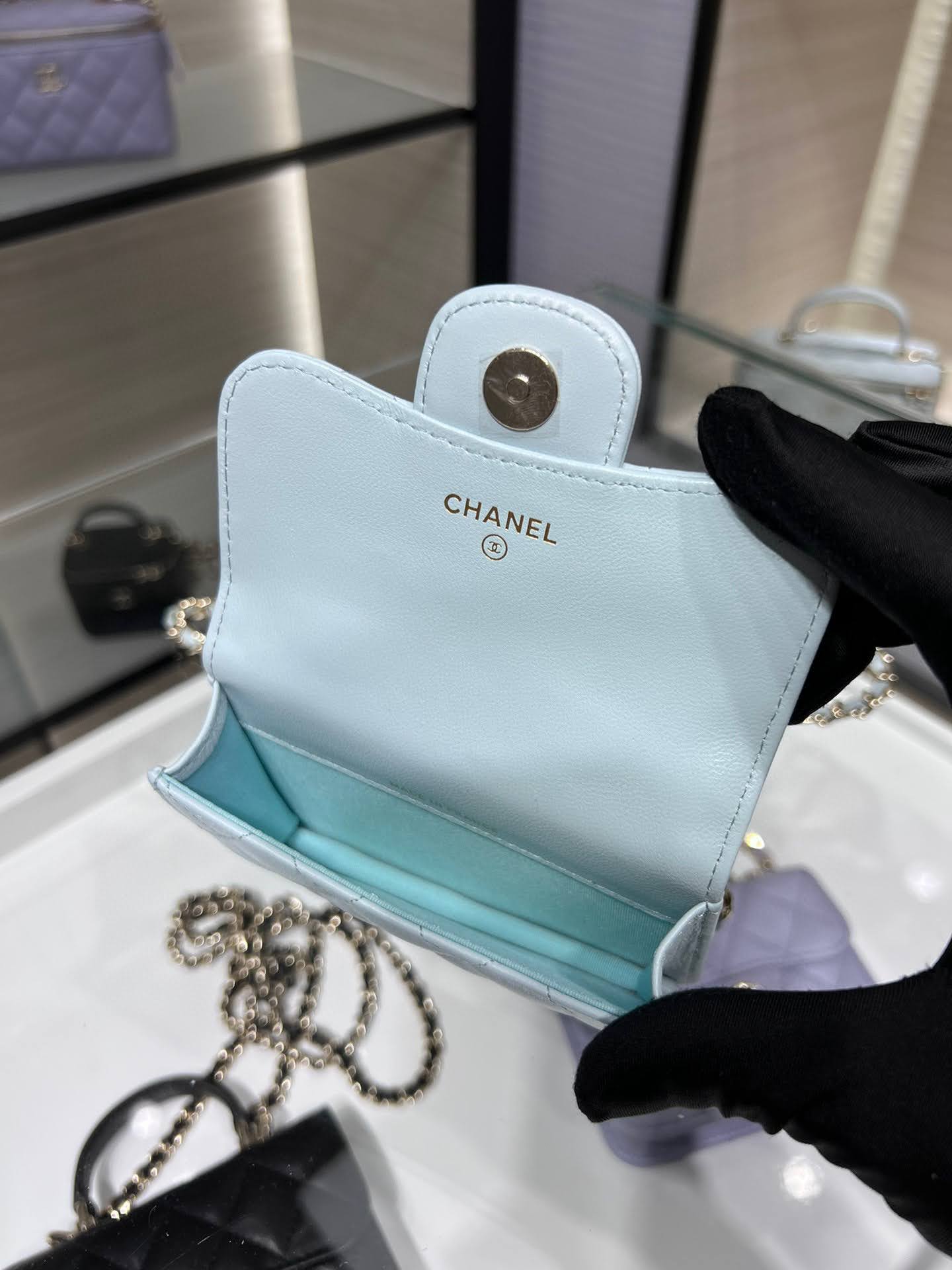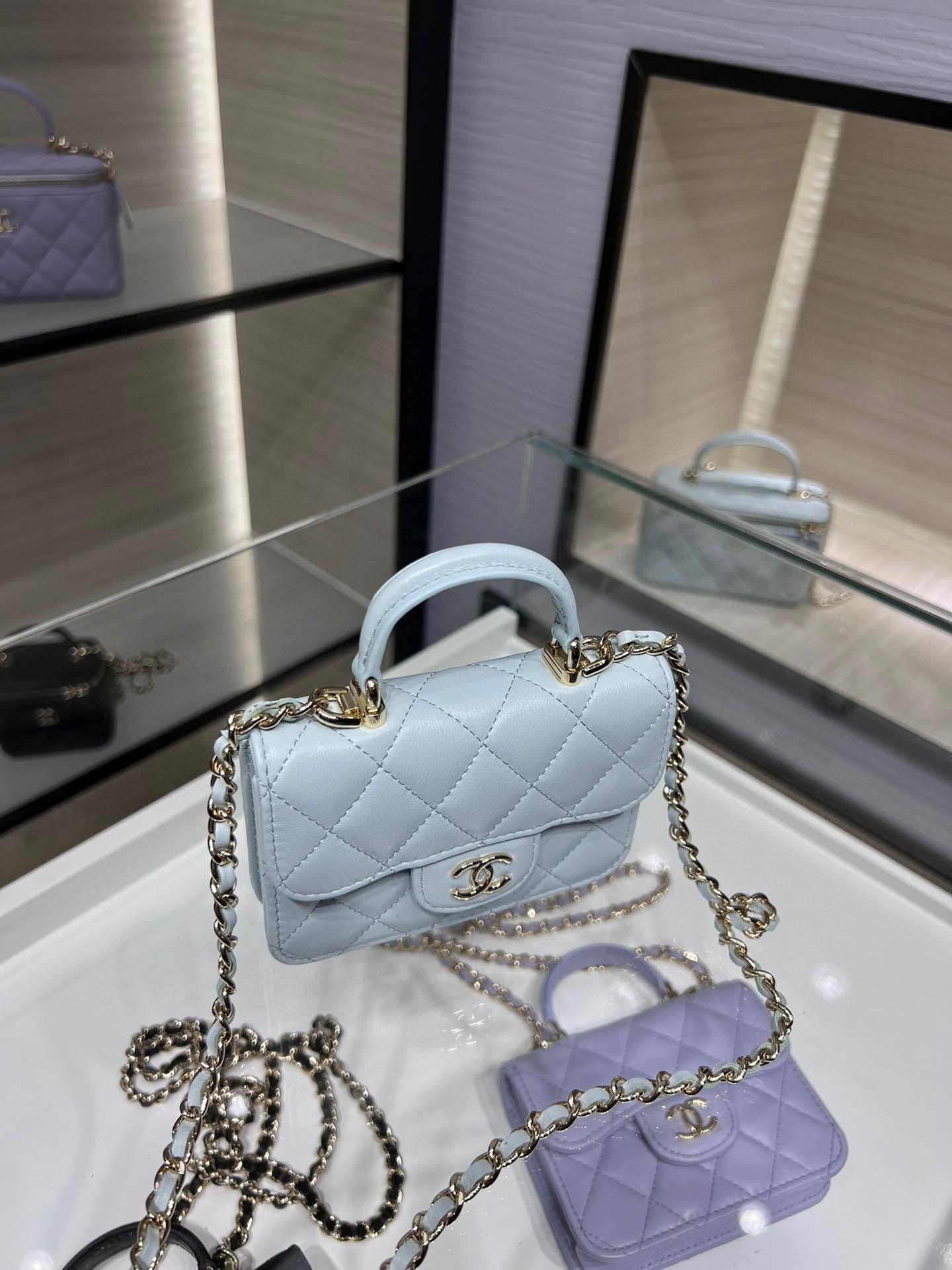 샤넬 미니백 탑핸들 코인펄스 코인퍼스 라이트블루 미니 체인백 AP2200 샤넬 탑핸들 미니백