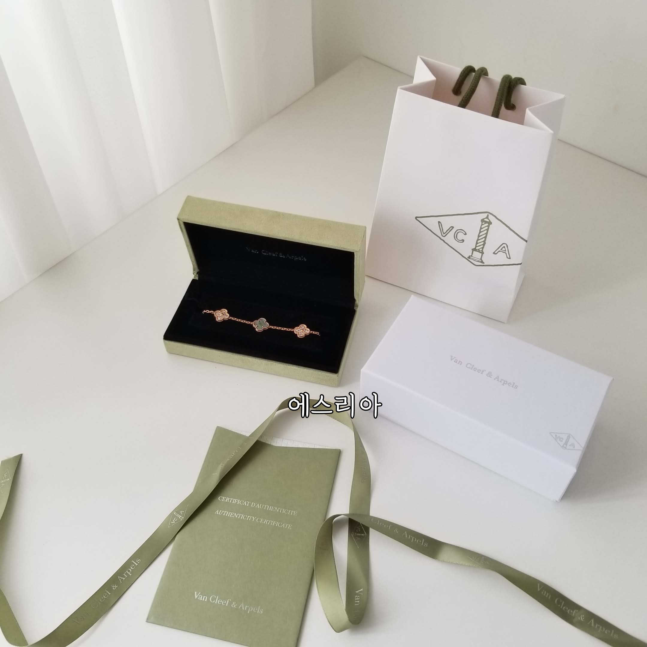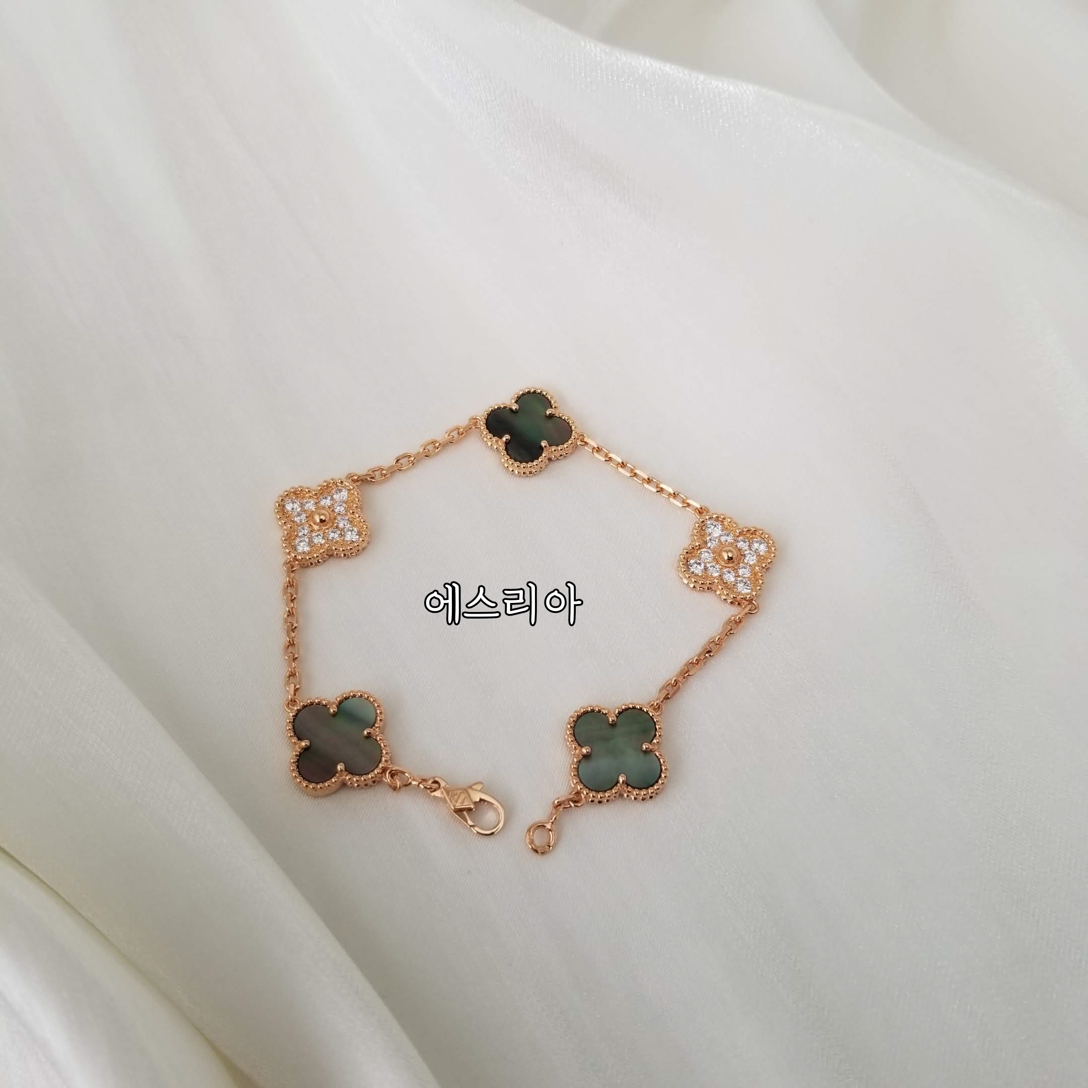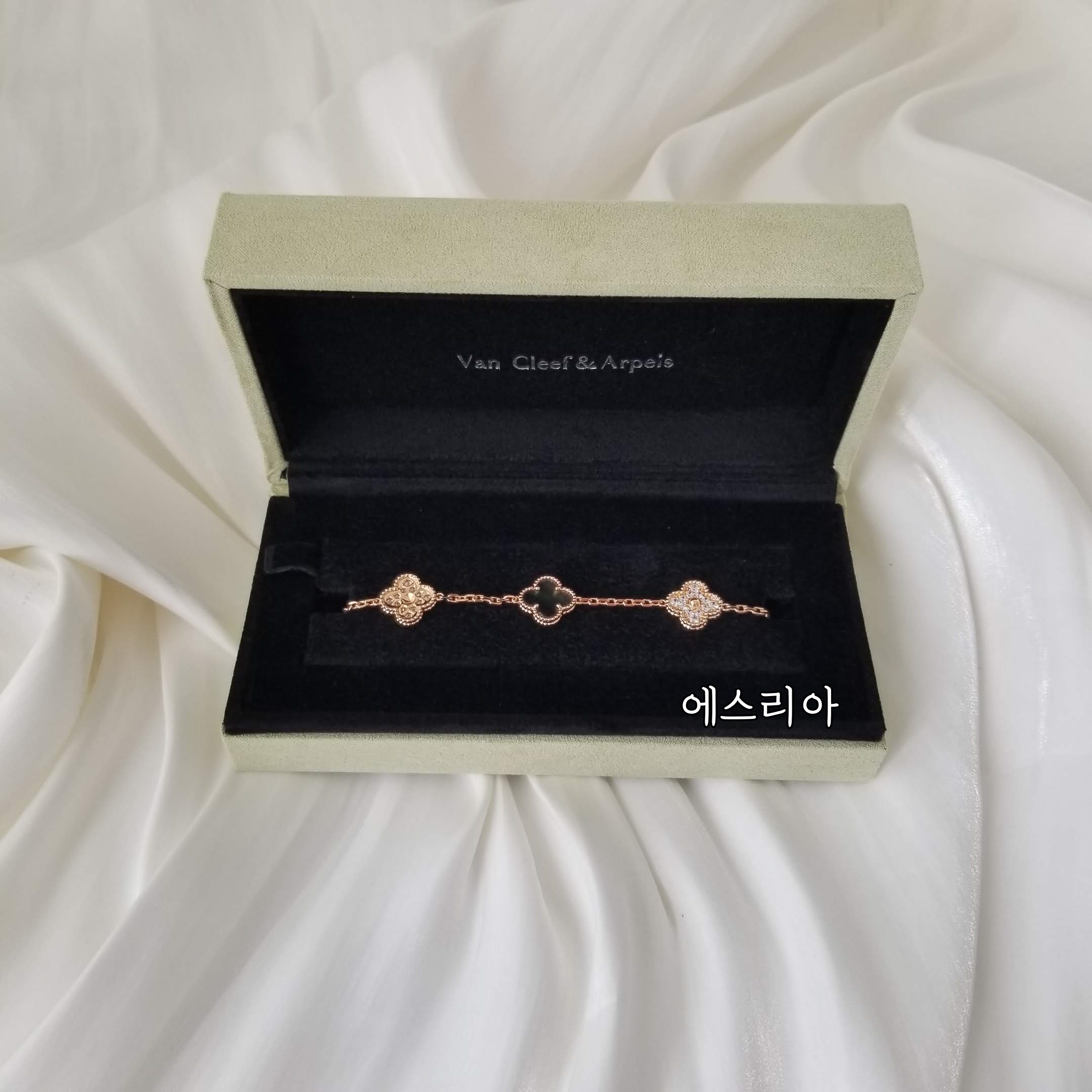 반클리프 팔찌 반클 팔찌 반클리프 모티브 5개 다이아장식 마더오브펄 에스리아 실사